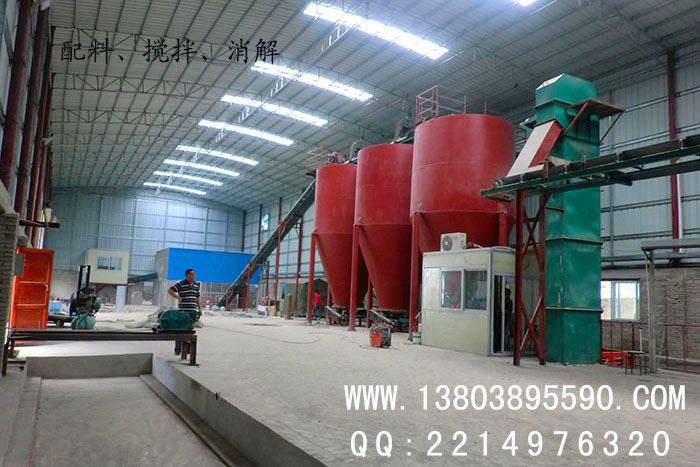 下面是我公司為廣東海豐公司配置的年產1億塊灰砂蒸壓磚生產線設備生產現場: 1、配料、攪拌、消解階段