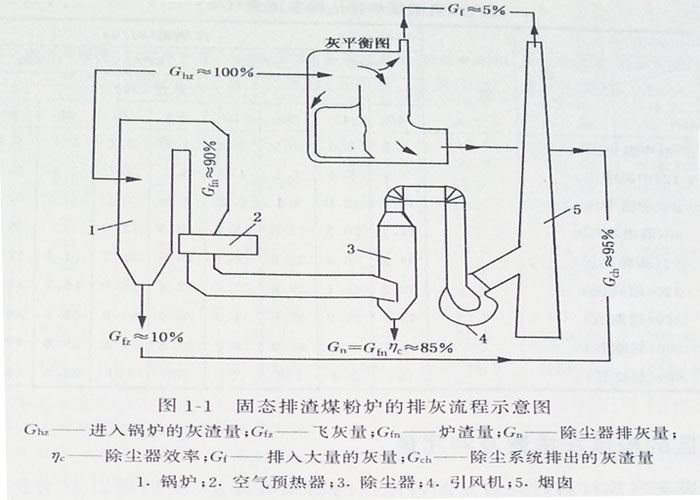 在鍋爐排出的灰渣中,除有一部分灰量隨煙氣排至大氣外,其余都將由除灰渣系統排出,圖1—1是固體排渣煤粉爐的排灰流程示意圖。