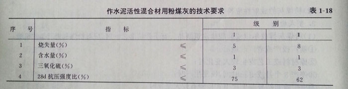 (2)水泥生產中作活性混合材的粉煤灰應滿足表1—18的要求。