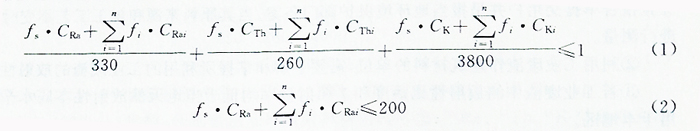 350、260、4000——常數,分別表示從外照射劑量限值考慮,226Ra、232Th、40K單獨存在時比活度的較大限值;