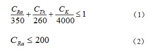 式中 CRa、CTh、CK——建筑材料產品中,226Ra、232Th、40K的放射性比活度,Bq?kg-1;